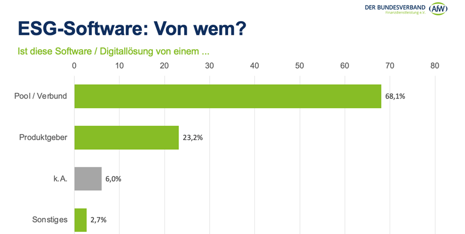 Mehr als zwei Drittel der Vermittler (68,1 Prozent) nutzen im Übrigen für die Präferenzabfrage die Tool-Lösungen von Maklerpools und -verbünden. Angebote von Produktgebern wie Versicherungs- oder Fondsgesellschaften nehmen 23,2 Prozent in Anspruch. Nur 2,1 Prozent der Tools für die ESG-Präferenzabfrage stammen aus anderen Quellen (siehe Grafik).